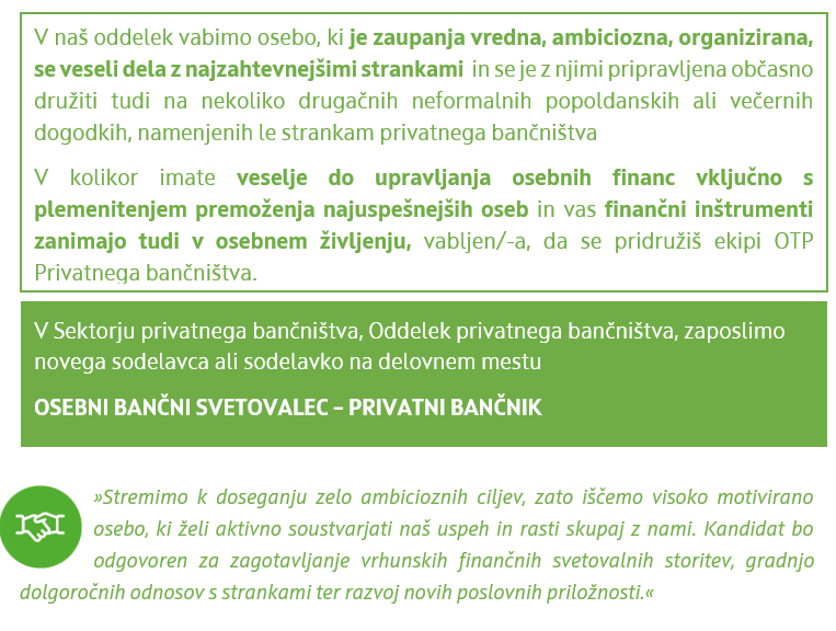 Oglej si prednosti zaposlitve v OTP banki ter korake zaposlitvenega procesa.