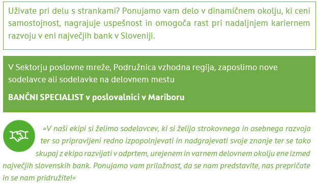 - promocija in ponudba vseh storitev banke in povezanih družb