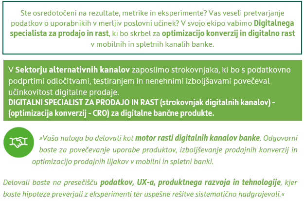 Digital sales specialist (strokovnjak digitalnih kanalov) v Sektorju alternativnih kanalov
