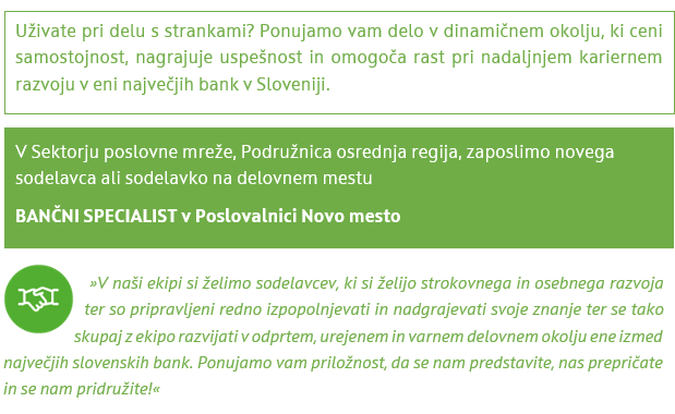 Bančni specialist v Poslovalnici Novo mesto