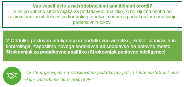 Strokovnjak za podatkovno analitiko v Oddelku poslovne inteligence in podatkovne analitike